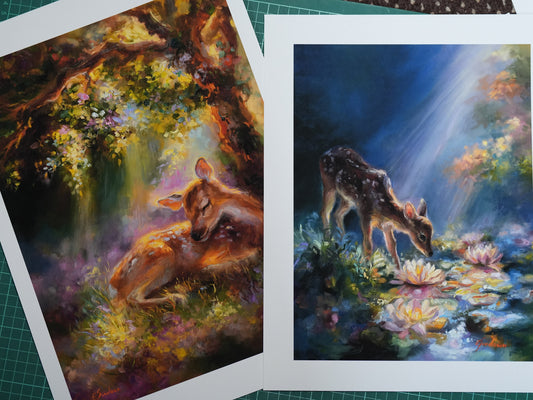 Where Water Lilies Glow – Limited Edition Fine Art Print ✨🦌🌸