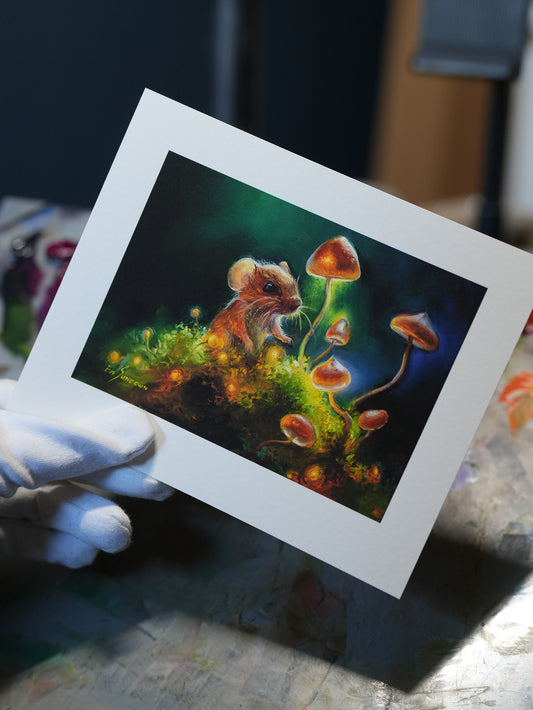 Mushroom Glow – Mini Fine Art Print ✨🍄🐭